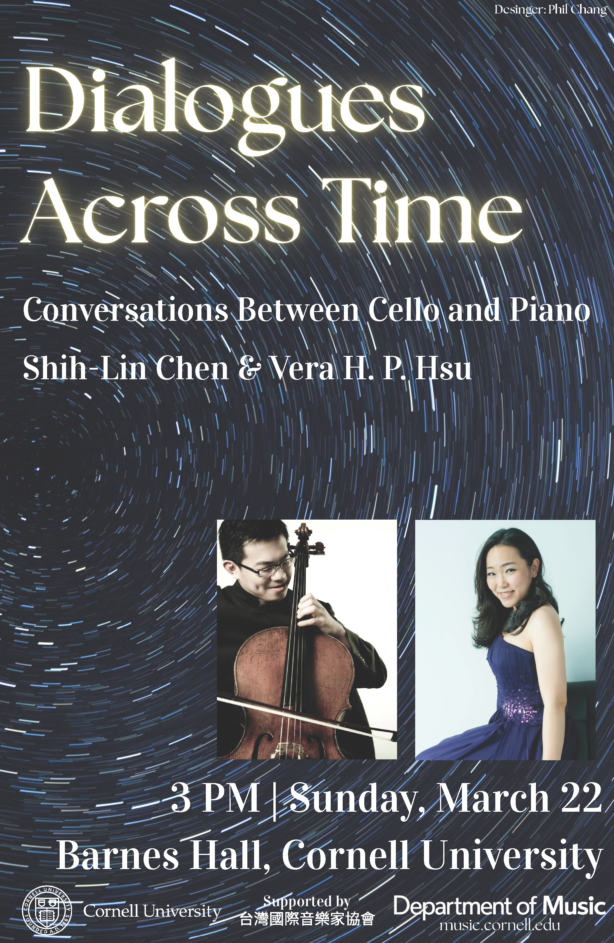 Renowned Taiwanese cellist Shih-Lin Chen—former member of the Borealis String Quartet, with over 600 performances worldwide during his six years with the ensemble, acclaimed by critics for performances of passion, vitality, and refined musical elegance, and frequently broadcast across Canada on CBC Radio—joins longtime chamber music collaborator and Cornell Music Department faculty member Vera H. P. Hsu. Together, they present a program of masterworks featuring Bach’s cello suite and cello sonatas by Beethoven and Brahms. Their many years of musical partnership promise a performance of rare intensity, depth, and brilliance.